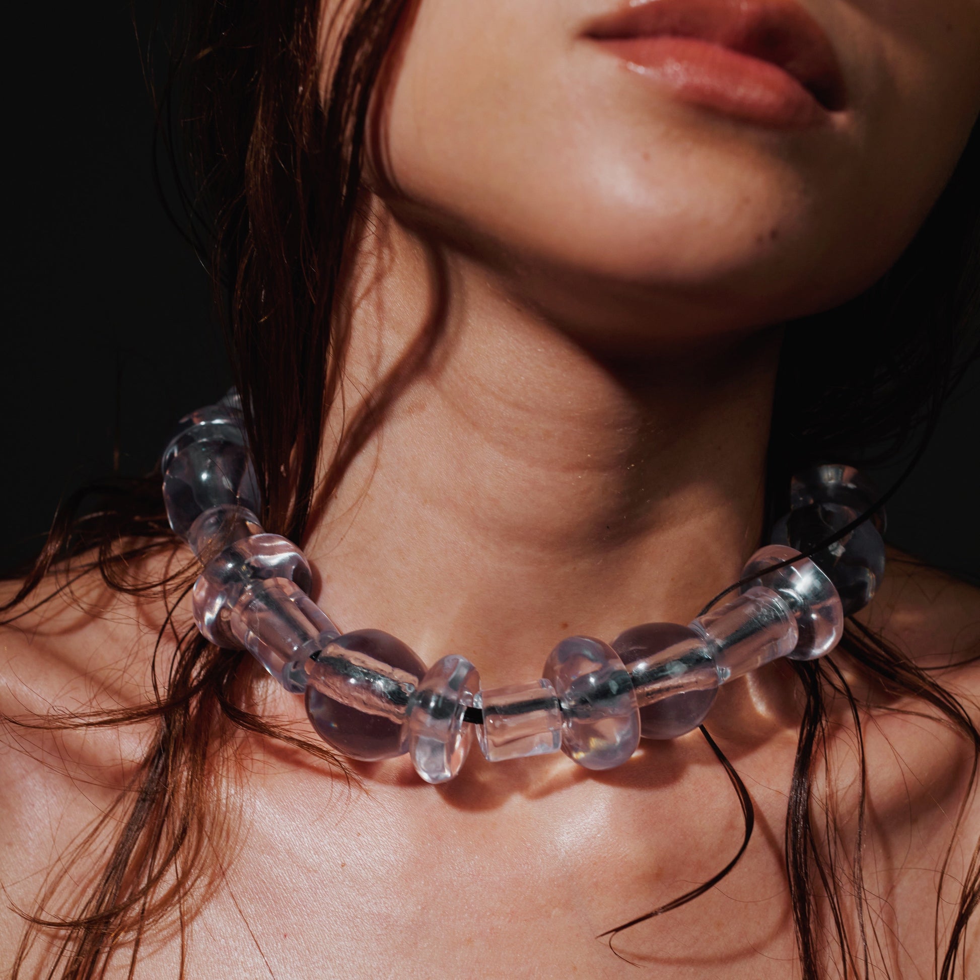 O Colar OS, nosso eterno clássico, ganhou novas texturas. Modelado à mão, em um formato maior que o original, em versão de resina translúcida e conectado por fio de couro. Essa peça de estética contemporânea expressa a sofisticação e originalidade das criações da Paola Orleans. Arte em Joia. | dimensões: + ou - 45 cm de comprimento |