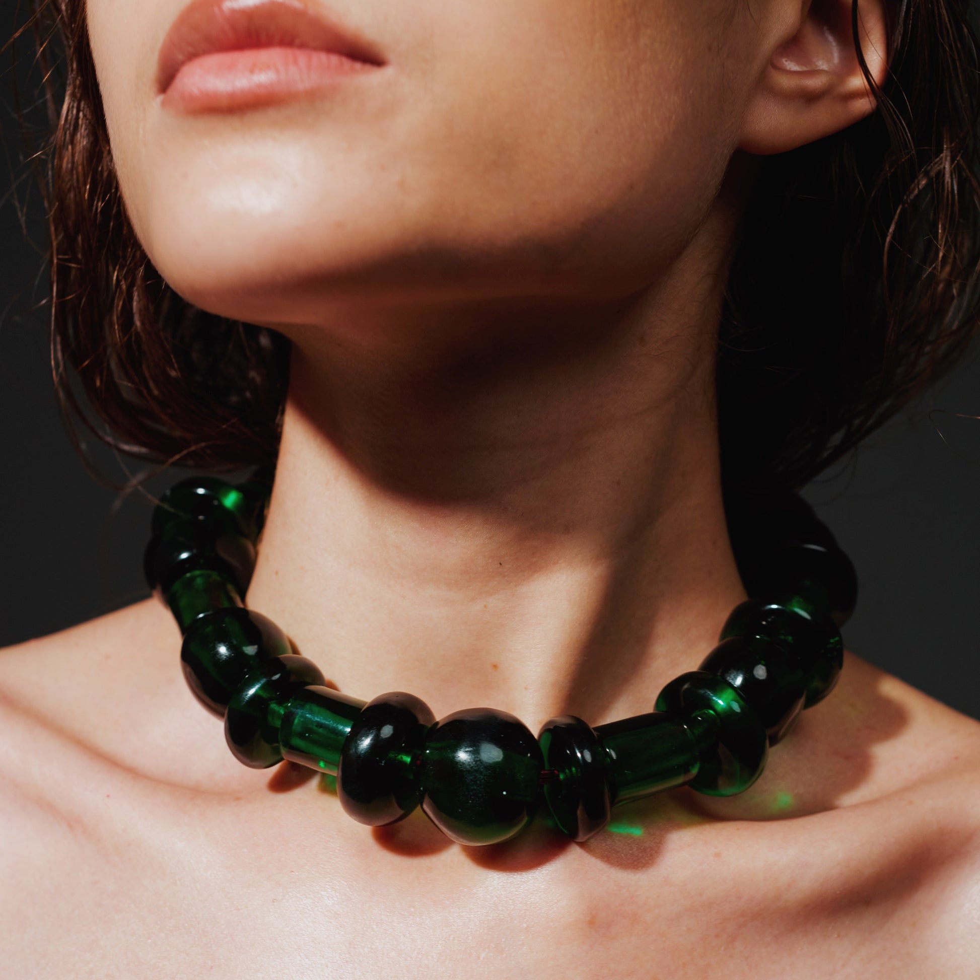 O Colar OS, nosso eterno clássico, ganhou novas texturas. Modelado à mão, em um formato maior que o original, em versão de resina translúcida e conectado por fio de couro. Essa peça de estética contemporânea expressa a sofisticação e originalidade das criações da Paola Orleans. Arte em Joia. | dimensões: + ou - 46 cm de comprimento |